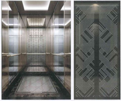 轎門:玫瑰金鏡面蝕刻 層門:香檳金鏡面蝕刻